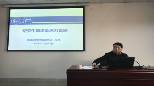 2018年11月23日下午2点,由永利登录402公司党委副书记占婧主讲的“研究生情绪及压力管理 ”心理健康讲座在人文逸夫楼A2014举行,018级全体硕士研究生参加了本场讲座。