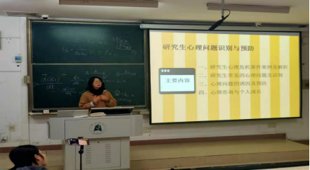 此次讲座包含四个部分:一,研究生心理危机事件案例与解析;二,研究生常见的心理问题与识别;三,心理问题的诱因及预防;四,心理咨询与个人成长。