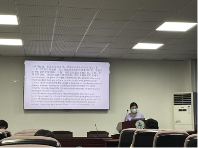 指导老师代表陶然老师发表心得,讲解指导修改过程。陶老师结合自身的口译员经验,鼓励同学们把握这一市场历练机会,在目前风险较小的情况下丰满羽翼,体验市场竞争,感受市场压力。就员工译稿中存在的共性问题,陶老师还从个人的词汇、句法使用,到团队配合和协作,从文化差异到语言结构,从搜集信息到积累经验都做了详尽说明,令在场的同学们受益匪浅。