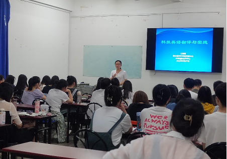 9月27日,湖北省对外科技交流中心王思倩老师莅临402cc永利安全线路,为2022级翻译专业新生带来了一场以“科技英语翻译与实践”为主题的讲座。讲座在逸夫楼A座1010举行,由402cc永利安全线路殷燕教授主持。