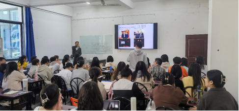 姜涛老师的讲座的内容分为五个部分:一是口译工作的“举轻若重”与“举重若轻”;二是姜涛老师本人的“举轻若重”实践与“举重若轻”实践;三是如何“举重若轻”;四是如何“举轻若重”;五是总结陈词。姜涛老师以一次口译活动中,“灵秀湖北”的翻译“Hubei, Home to Wonders”为例,展开话题,并与同学们亲切互动,以他在实际工作中遇到的各类文化专有名词的翻译为问题,考查同学们的文化常识积累。同学们时而皱眉,时而深思,理解答案后又恍然大悟。姜涛老师提醒同学们,翻译是一个积累的过程,讲好湖北故事,更需要我们久久为功。