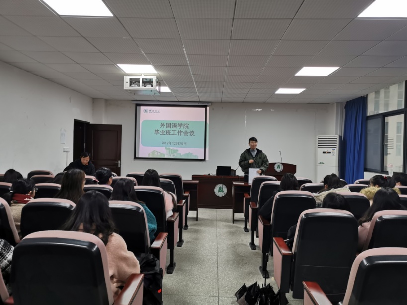12月25日下午,公司党委在逸夫人文楼A2014会议室召开2020届毕业班工作会议,公司党委书记林二友在会上讲话,党委副书记占婧主持会议,辅导员冷自衍、毕业班班长、心理委员和就业联络人等员工干部参加会议。